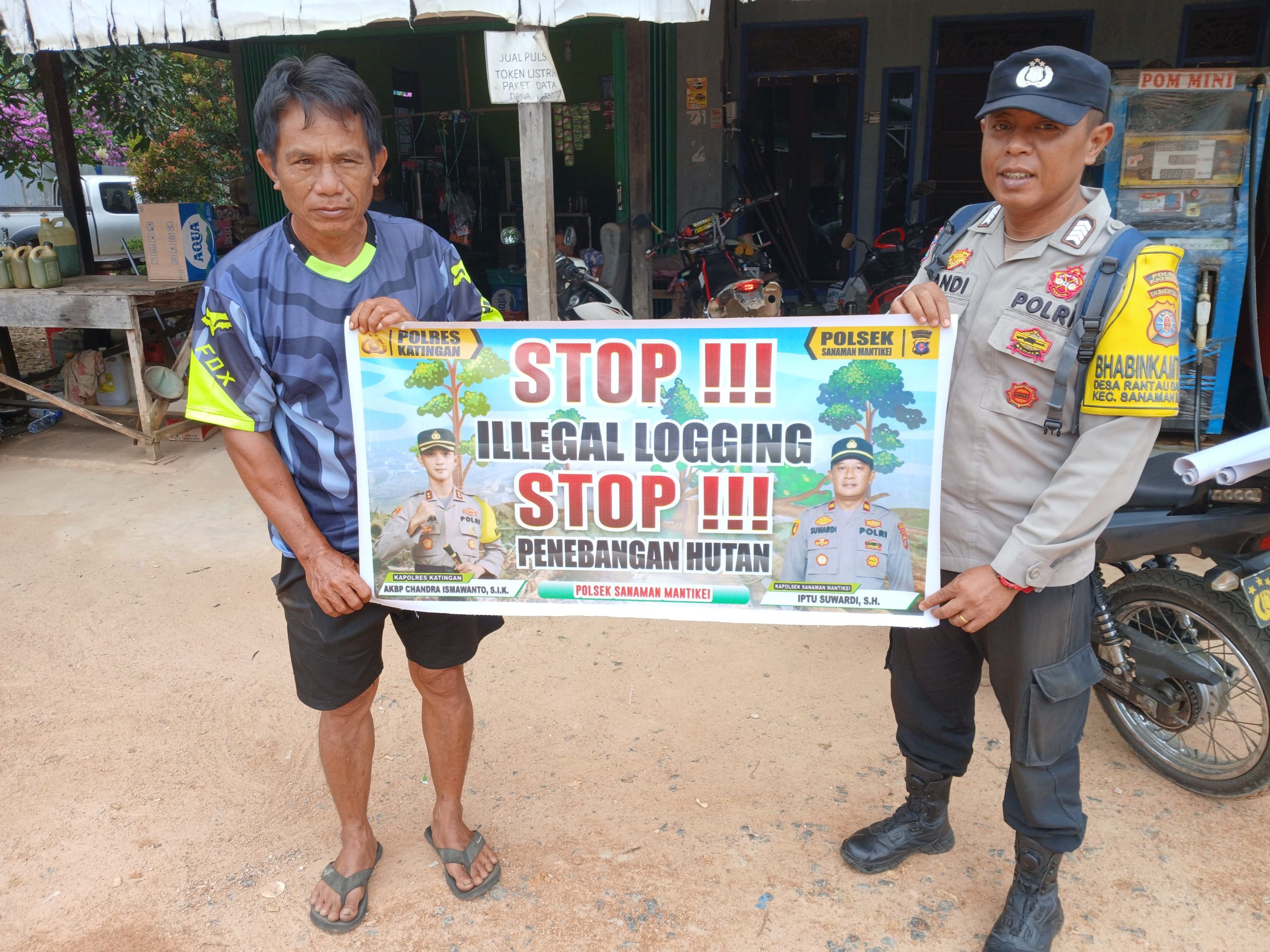 Kapolres Katingan AKBP CHANDRA ISMAWANTO , S.I.K.,melalui Kapolsek Sanaman Mantikei IPTU SUWARDI , S.H menjelaskan kegiatan Bhabinkamtibmas jajaran Polres Katingan dengan cara sosialisasi kepada masyarakat agar mengerti dan memahami tentang larangan dan sangsi bagi pelaku pekerja Ileggal Loging serta mengerti bahwa dampak dan akibat yang di timbulkan akibat Ileggal Loging tersebut.