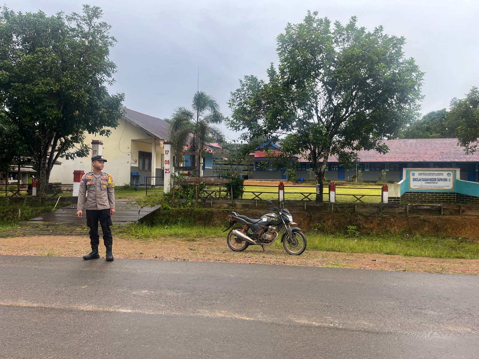 Seperti yang terlihat didepan Sekolah SDN 1 tapin bini kecamatan lamandau Bripka Ari beserta Bripda Etsa Anggota Jaga tampak tengah melaksanakan pengamanan /pengaturan Siswa Siswi SDN 1 tapin bini tersebut.
